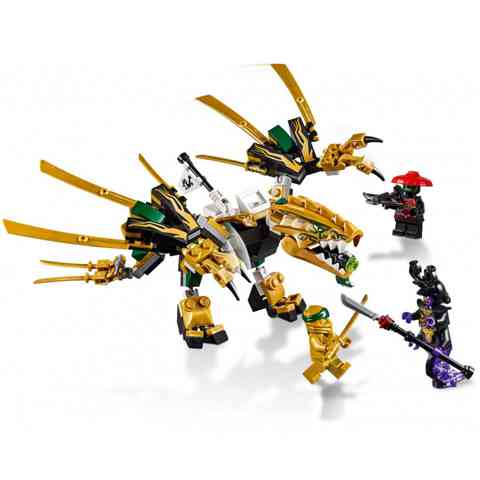 Aligha kell bárkinek is bemutatni a Ninjago™ világát, hiszen a LEGO készletek mellett a televíziók képernyőiről is visszaköszönnek. Ebben a dobozban a Sötét Úr és az aranysárkányon lovagló Lloyd harcáról szól. Az aranysárkány minden egyes porcikája harcra termett, a farka és a szárnya pengékből áll, félelmetes fogai és éles karmai elől még a Sötét Úr sincs biztonságban. A készletben több mint százhetven építőelem található, amelyek segítségével felidézheted Ninjago izgalmas kalandjait és új történeteket találhatsz ki.