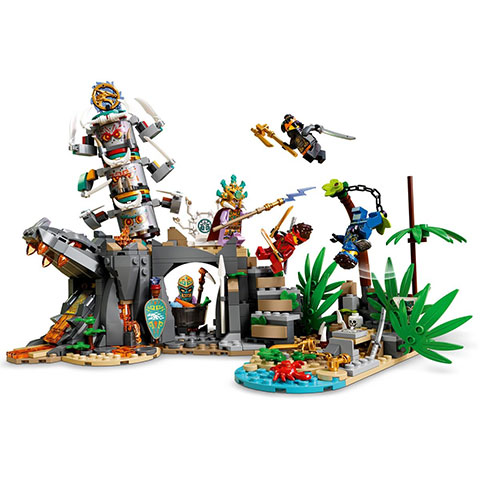 A nindzsarajongók eljátszhatják a LEGO Ninjago TV sorozat legjobb és legizgalmasabb jeleneteit Az Őrzők faluja építőkészlettel. Ez a bámulatosan részletes nindzsajáték tartalmaz egy sárkány szájában található börtönt, rejtett kilövőket és egy csapdát, ami a szereplőket fellógatja egy fára. A szett 5 minifigurát tartalmaz, úgy mint a szigetlakó Cole, Jay és Kai figuráit, Mammatus főnököt és egy Mennydörgés Őrzőt, amelyek mindegyikre klassz fegyverekkel van felszerelve, így a gyermekekre mókás csaták várnak, miközben az értékes viharamulettért küzdenek. A készlet tetején található kőoszlopot 3 külön szörnnyé szedheted szét. A LEGO Ninjago csatajátékokkal a gyermekek felállnak a képernyők elől, hogy elmerüljenek a fantáziadús akció világában. Itt életre szóló készségeket sajátíthatnak el, mialatt hőseik oldalán megküzdenek a gonosztevőkkel a nindzsajátékok klassz gyűjteményének segítségével, amiben sárkányok, robotok és templomok is várnak rájuk.