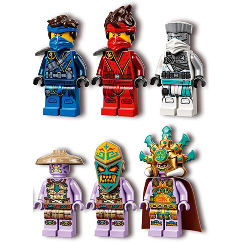 A gyerekekre izgalmas, tengeri kalandok várnak ezzel az egyedi és szuper Ninjago Katamarán tengeri csata játékkészlettel. A két katamarán közül az egyik három hajóra bontható, amelyek közül az egyik egy minibörtönt is tartalmaz, így a gyermekekre órákig tartó, fantáziadús játék vár. A nindzsajátékhoz hat minifigura tartozik Jay, Kai és Zane figurái, valamint ellenségeik, Mammatus főnök, egy Mennydörgés Őrző és egy Morajlás Őrző,akik mindannyian lándzsákkal, kardokkal és pajzsokkal vannak felszerelkezve, így a gyermekekre még izgalmasabb csata vár. A LEGO Ninjago csatajátékokkal a gyermekek felállnak a képernyők elől, hogy elmerüljenek a fantáziadús akció világában. Itt életre szóló készségeket sajátíthatnak el, mialatt hőseik oldalán megküzdenek a gonosztevőkkel a nindzsajátékok klassz gyűjteményének segítségével, amiben sárkányok, robotok és templomok is várnak rájuk.