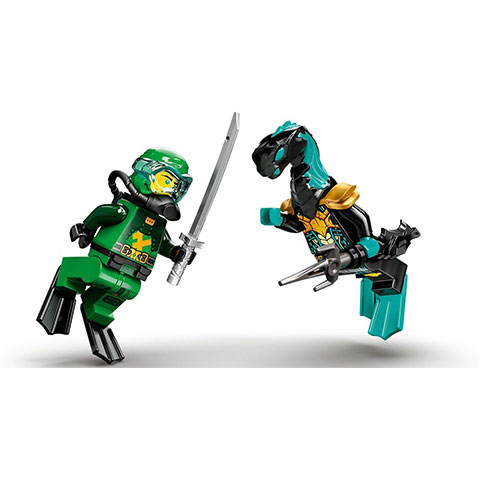 - A nindzsajátékkészlet 2 minifigurát tartalmaz: Búvár Lloydot maszkkal, légtartállyal és békatalppal, valamint egy Maaray őrt. A két szereplő megküzdhet az értékes hullámamulettért, amit a készletben szintén megtalálsz.