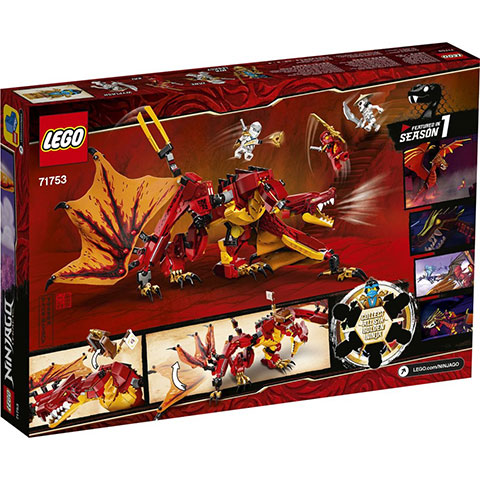 - A részletesen kidolgozott, repülő sárkánynak állítható állkapcsa, farka, lába és szárnya van, a hátán pedig egy nyereg, amire a gyermekek ráültethetik a nindzsa minifigurákat, amikor csatába indulnak.