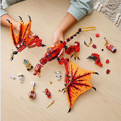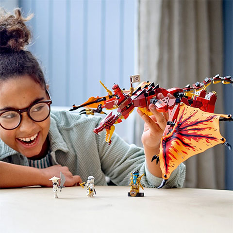 - A LEGO NINJAGO Tűzsárkány támadás játékkészlet tartalmaz egy sokféleképpen beállítható sárkányt, amivel a kreatív gyermekekre órákig tartó, szárnyaló kalandok várnak.