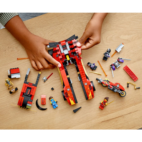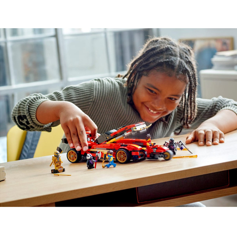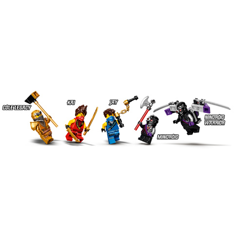 A Nindroidok ismét akcióba léptek, és csak gyermeked segítségével akadályozhatják meg őket a nindzsák. Ebben a szettben most a Ninjago X-1 Nindzsa csatagép lehet gyermekedé, mely rendkívüli részletességgel készült, így a játék élménye még jobb lehet általa. Az autó belsejében egy motorkerékpár is helyet kapott, melyet gombnyomásra ki lehet lőni, így megtámadva a Nindroidokat. A készletben ezen kívül megtalálható az arany Cole Legacy gyűjthető minifigurát egy kis állvánnyal, ami a NINJAGO játékok 10. évfordulóját ünnepli, ám rajta kívül még 4 minifigura is megtalálható benne. Nem csak remek szórakozás, de remek fejlesztő játék lehet, hiszen a képzeletet és az építés során a kézügyességet is fejleszti. Az autó 7cm magas, 23 cm hosszú és 11 cm széles.