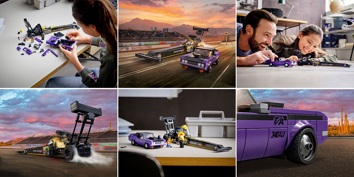 A szélsebes járművek rajongói imádni fogják ezt a LEGO Speed Champions Mopar Dodge//SRT Top Fuel Dragster és 1970 Dodge Challenger T/A építőkészletet. A valósághű részletekkel teli, csodálatos modellek izgalmas építési élményt nyújtanak, emellett a kiállításhoz és a versenyhez egyaránt klasszak.