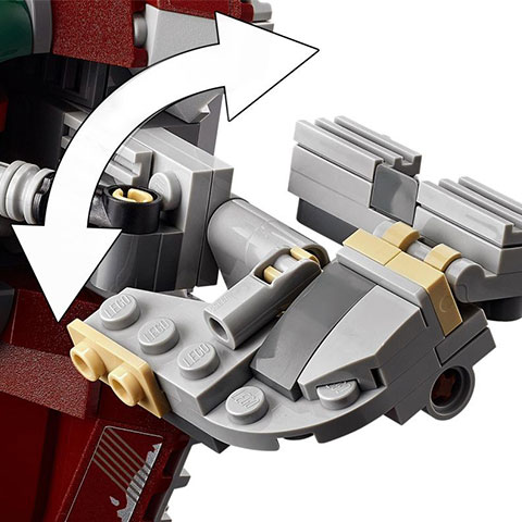 • A csillaghajó tartalmaz egy fogantyút a könnyű repüléshez, egy nyitható LEGO® minifigura-pilótafülkét, forgó szárnyakat, 2 korongvetőt, 2 forgatható kettős ágyút (lövésre nem alkalmasak) és egy rekeszt a karbonit elem számára.