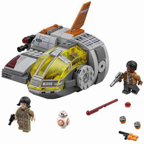 Az ellenállás flottáját rendkívül sok különleges hajó adja, és ez csak fokozódik, miután az Első Rend elpusztította az Új Köztársaság megalapítására törekvő bolygókat. Ez a kis gondola leginkább egy menekülő járgány, azonban ez sem maradt fegyverek nélkül, hiszen egy korongvetővel és egy rugós kilövővel is fel van szerelve. Természetesen a minifigurák között olyan régi ismerősöket is köszönthetünk, mint Finn a rohamosztagosból lett ellenálló katona és BB-8 a gombóc hasú kis droid.