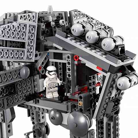 A Birodalom visszavág című Star Wars filmben már láthattuk, hogy a Galaktikus Birodalom AT-AT lépegetői szinte megállíthatatlanul pusztították el az Echo bázis védő pajzs generátorát, így nem meglepő, hogy az Első Rend kitartott a lépegető harci egységek mellett, azonban továbbfejlesztette őket kiküszöbölve a korábbi gyengeségeit, így az Ellenállásra meglehetősen nehéz idők várnak, hiszen egy hatalmas nehéz támadó lépegetővel erősítheted az Első Rend katonai egységeit. A több mint ezerháromszáz építőelem összeállítása nagyszerű kihívást jelent minden Star Wars rajongó számára. Az elkészült lépegető rugós kilövővel és korongvetőkkel veheti fel a harcot az Ellenállással. A lépegető lábai mozgathatók, az oldaalát felnyitva pedig betekintést nyerhetsz a gépszörny belsejébe.