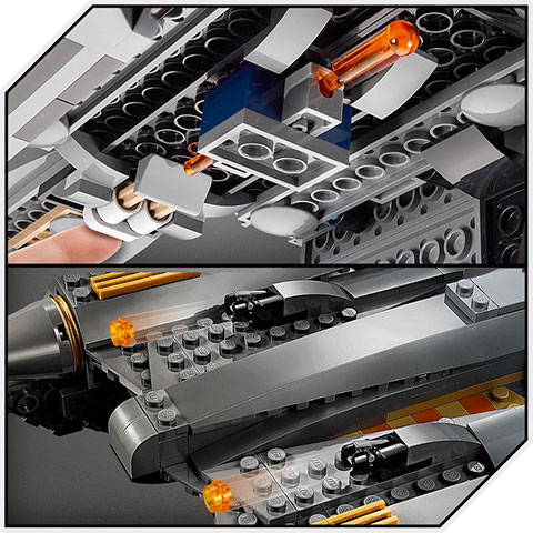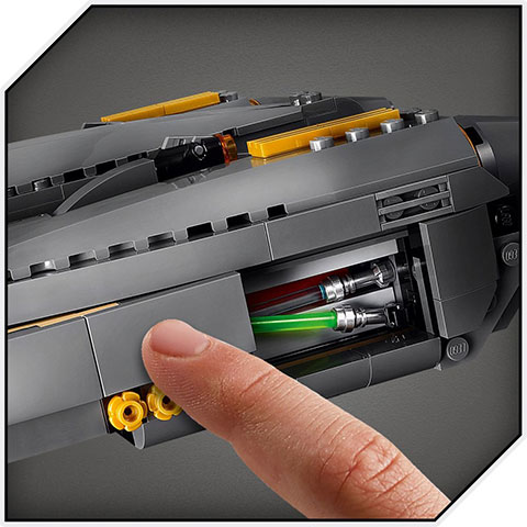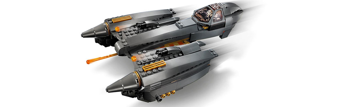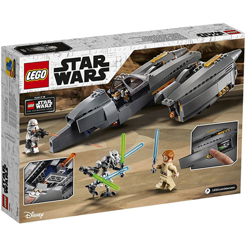 • Grievous tábornok Starfightere tartalmaz egy nyitható, LEGO® minifigurának kialakított pilótafülkét, 2 rugós kilövőt és egy behúzható futóművet,a mellyel a rajongók szabadjára engedhetik képzeletüket, akár egyedül, akár a barátaikkal játszanak.