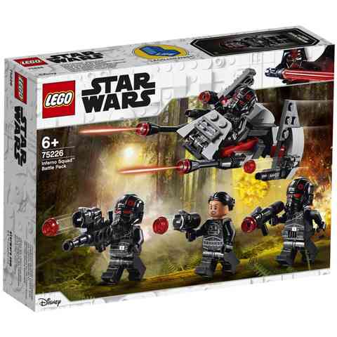 Az Inferno osztag a birodalmi rohamosztagosok egy különlegesen képzett elitt kommandós osztaga, amit a Star Wars Battlefront játékból ismerhettek meg a rajongók. A vagány osztagot Iden Veriso vezeti, és a legkülönfélébb feladatokat látják el, és még akkor is hűek maradnak a Galaktikus Birodalomhoz, amikor az Endori ütközetben az Uralkodó és Vader nagyúr is elesik. Ezek a harcosok most korongvető fegyverekkel egy egy siklóval felszerelve indulnak a Lázadók nyomába. A LEGO Star Wars készletek kiválóan alkalmasak arra, hogy a gyerekek felidézzék a film legizgalmasabb részit, vagy új kalandokat találjanak ki.