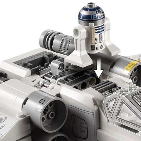 • Az X-szárnyú tartalmaz egy nyitható, LEGO® minifigurának kialakított pilótafülkét, ahol R2-D2-nak is van hely, a szárnyait egy gombnyomással támadó pozícióba állíthatod, emellett egy behúzható futóművel és 2 rugós kilövővel is fel van szerelve.