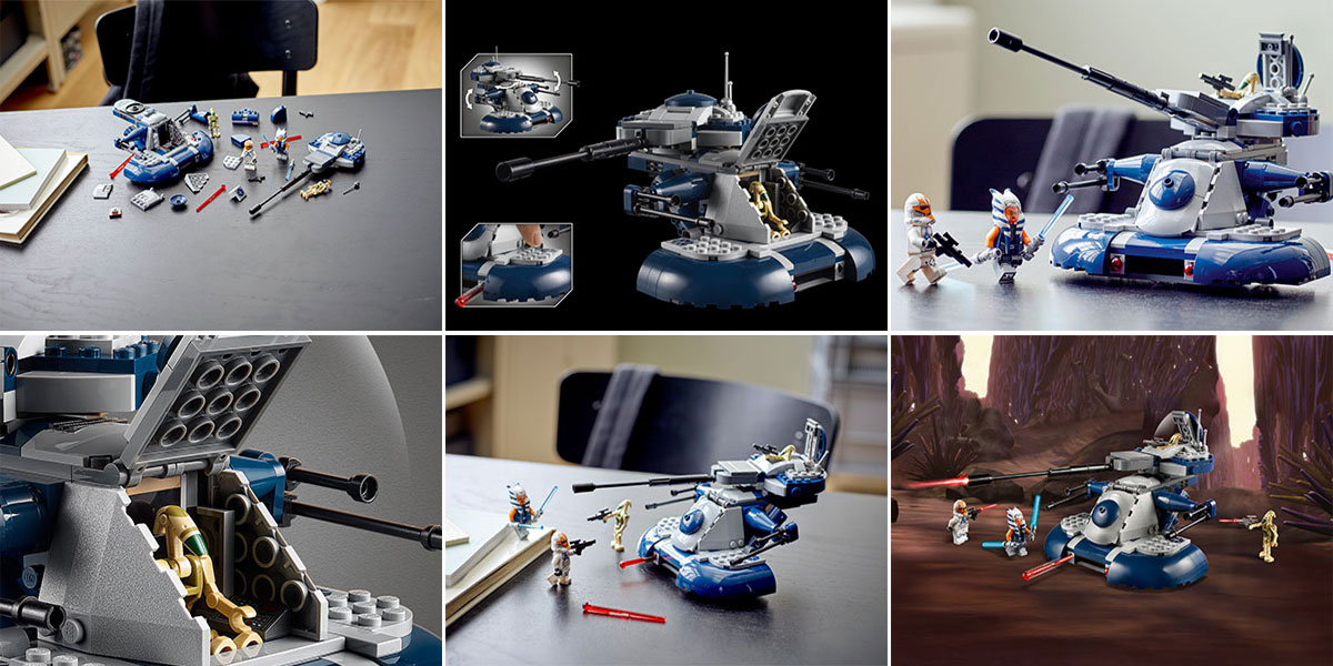 • Az AAT építőjáték több mint 12 cm magas, 21 cm hosszú és 14 cm széles. Ha a rajongók még több kreatív mókára vágynak, akkor a járművet a LEGO® Star Wars: A Skywalker saga videojátékban is irányíthatják.