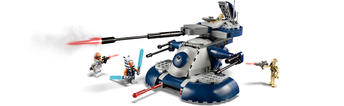 Építsd meg a Star Wars univerzum egyik leghatékonyabb és legpusztítóbb droid fegyverét, az élethű LEGO Páncélozott Támadó Tank modellt!