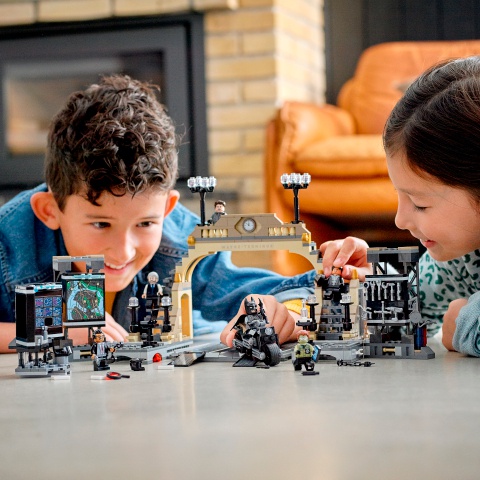 A Batcave számítógépekkel, szerszámokkal és hegesztő felszereléssel van ellátva a járművek javításához. A 2 oldalú fal, aminek egyik oldala egy nagy GOTHAM CITY™ térképet ábrázol, a másik pedig eszköztartóként funkcionál, csuklópántos kialakítású, így különféle pozíciókba fordítható, hogy nagyobb játékteret tudj kialakítani. A készlet a Batman film 6 minifiguráját tartalmazza: Batmant, Selina Kyle™-t, Rébuszt, Driftert, Alfredet és Gordon rendőrfőnököt. A Rébusz kódolt üzeneteit tartalmazó 3 elemet a gyerekek csak a különleges nagyítóval tudják elolvasni, hogy felfedjék a nyomokat. Amikor Batman a motorkerékpárján száguld, akkor alteregójának, Drifternek álcázhatja magát. És ha bármelyik gonosztevővel visszatér, bezárhatja őket a Batcave saját börtönébe. A játékkészlet emellett lehetővé teszi, hogy a Batmobile: Penguin™ hajsza (76181, külön kapható) szettben található Batmobile™-lal felhajts a rámpákra, és megjavítsd azt.