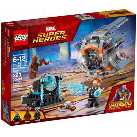 Thor legendás kalapácsa megsemmisült, így muszáj találnia egy megfelelő fegyvert, ha fel akarja venni a harcot Thanossal. Csatlakozz Thor fegyver kereső küldetéséhez, utazz Thor, Mordály és Groot társaságában a mentőgondolában és keresd meg a felülmúlhatatlan fegyvert és a Végtelen követ! Ebben a szuperhős játékban egy nyitható pilótafülkéjű menekülő gondolát találsz, amelyben három figurának van hely és két korongvetővel van felfegyverezve. Fedezd fel a kozmikus erőforrással felszerelt, felfegyverzett űrállomást, amiben a Végtelen kő elem is található.