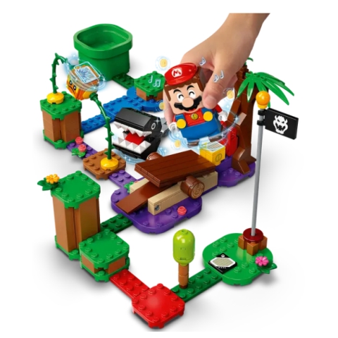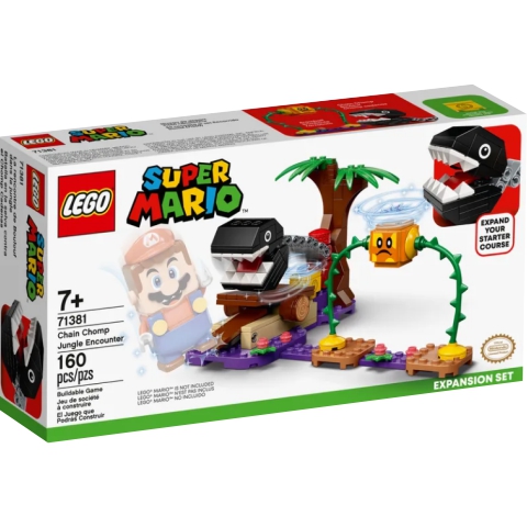Az építők egy izgalmas dzsungel pályával bővíthetik LEGO® Super Mario™ univerzumukat ezzel a Chain Chomp Találkozás a dzsungelben kiegészítő készlettel. A készlet tartalmazza a Bramball és Chain Chomp figuráit, akiket LEGO® Mario™ legyőzhet (a figurát a csomag nem tartalmazza), egy ugróplatformot, ahonnan lelökheti Chain Chompot, és egy Érmekockát, amivel a játékosok digitális érméket nyerhetnek.