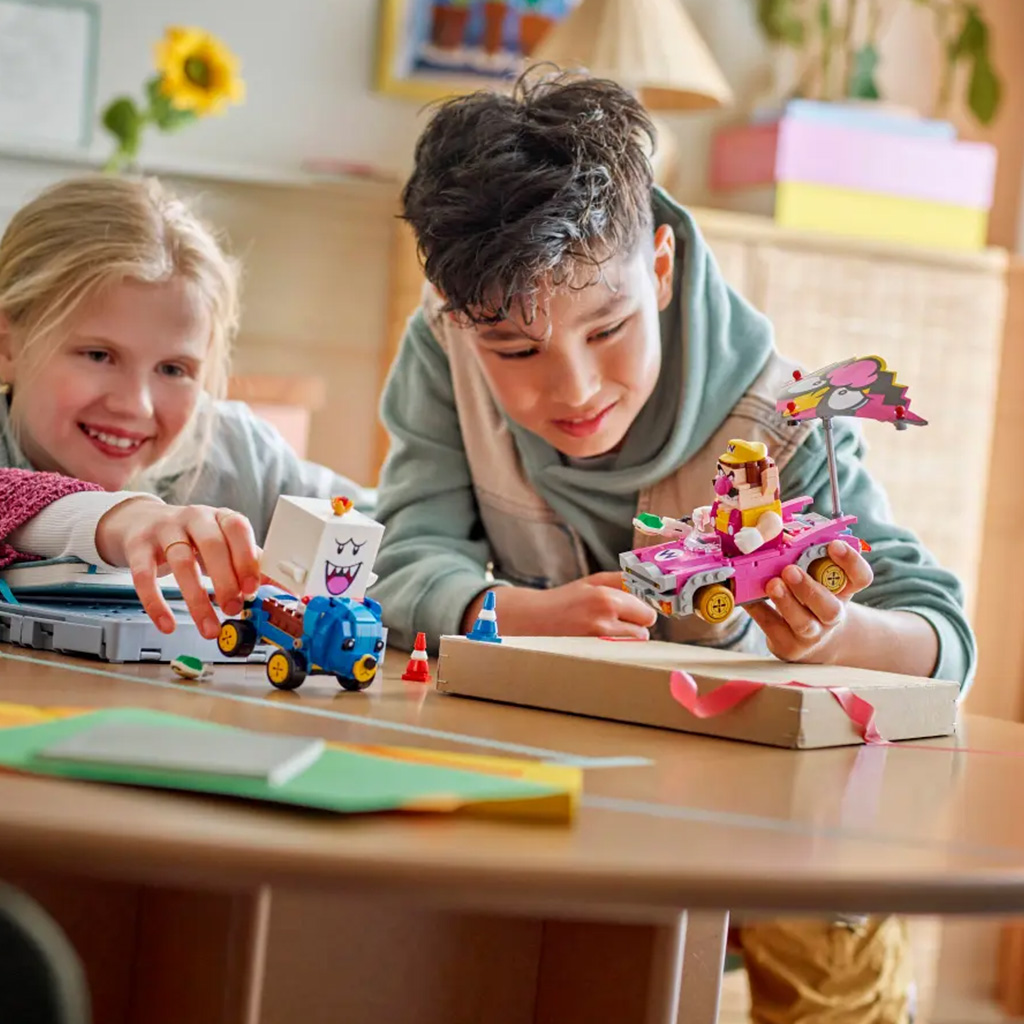 •Interaktív játék – Vezesd a Badwagont vagy a Teddy Buggyt egy LEGO® Mario™, egy LEGO® Luigi™ vagy egy LEGO® Peach™ figurával (nem a szett részei), hogy Mario Kart™ hang- és vizuális effekteket hozz létre: dudálás, driftelés és még sok más