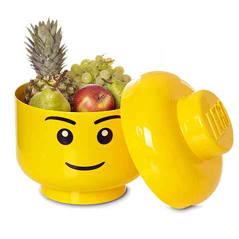 Nem csak élelmiszert, de akár játékokat is tárolhatnak a gyerekek ebben a hatalmas méretű Lego minifigura fejben, mely épp úgy néz ki, mint a klasszikus fiú minifigura. A sárga színű fej a szobában is remek dekorációként szolgálhat, a polcra kihelyezve mutatós darab lesz. Emeld le a minifigura fejét és tárold benne játékaid!