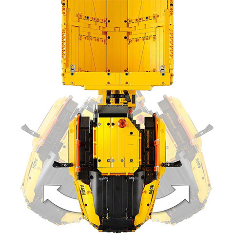A valósághű funkciók érdekében a teherautót 1 nagy szögbe állítható motor, 1 XL-es motor és 1 L-es motor működteti egy Bluetooth irányítású Smart Hubnak köszönhetően szinte minden olyan manőver és feladat elvégezhető vele, mint amire a valódi jármű is képes. A hatvan centiméres hosszának köszönhetően a jármű irányítása is hatalmas játékélményt okoz, amihez hozzájönnek az egyéb funkciók is.