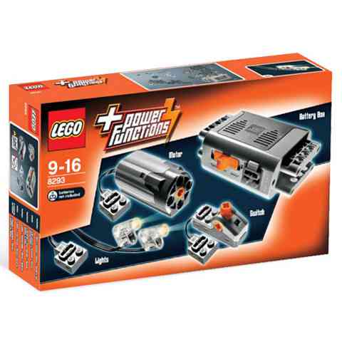 A "Power Functions" motoros készlet tartalmaz egy motort, akkumulátor dobozt, fény-kábelt, kapcsoló rudat.