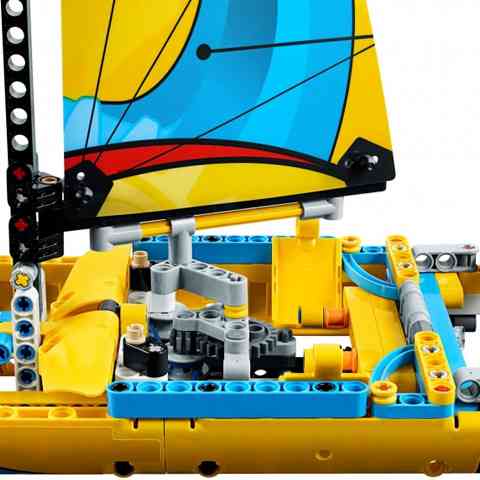 Készülj egy izgalmas tengeri vitorlás versenyre, hajózz több ezer mérföldet és végül haladj át elsőként a célvonalon ezzel a csodálatos versenyjachttal!! Élethű részletességgel kidolgozott LEGO Technic versenyvitorlás sportos sárga és kék színösszeállításban, kötelekkel és csörlőkkel ellátott gyönyörű, mintás vitorlákkal, valamint részletesen kidolgozott hajótörzzsel. A csörlők tekerésével állítsd be a vitorlákat, hogy munkára bírd a szél erejét. Navigálj pontosan, irányítsd biztos kézzel a hajó kormánylapátját, és készülj fel a szélsebes vitorlázásra! A LEGO Technic Versenyjacht 2 az 1-ben, így a hajódat egy fantasztikus katamaránná is át tudod építeni!