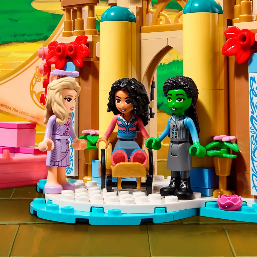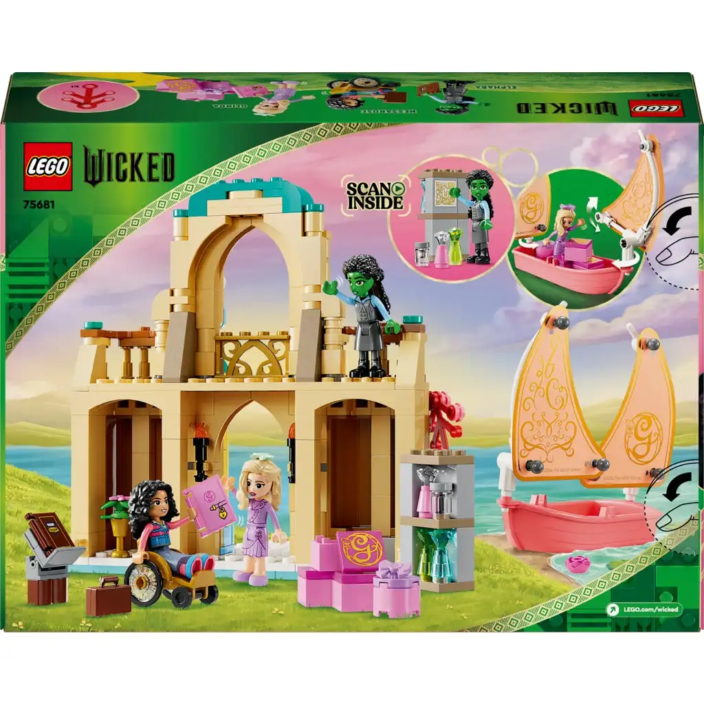 A rajongók LEGO® Wicked kalandokra indulhatnak, amint megérkezik Glinda a Shiz Egyetemre a gyerekeknek készült játékhajón. A hajónak csuklópántos a vitorlája, és rózsaszín árnyalatot ölt, pont, mint a filmben. AWicked című film ihlette, barátságról szóló ajándékkal a gyerekek Glinda, Elphaba és Nessarose mini babafigurákkal játszhatnak el különféle történeteket a barátságról.