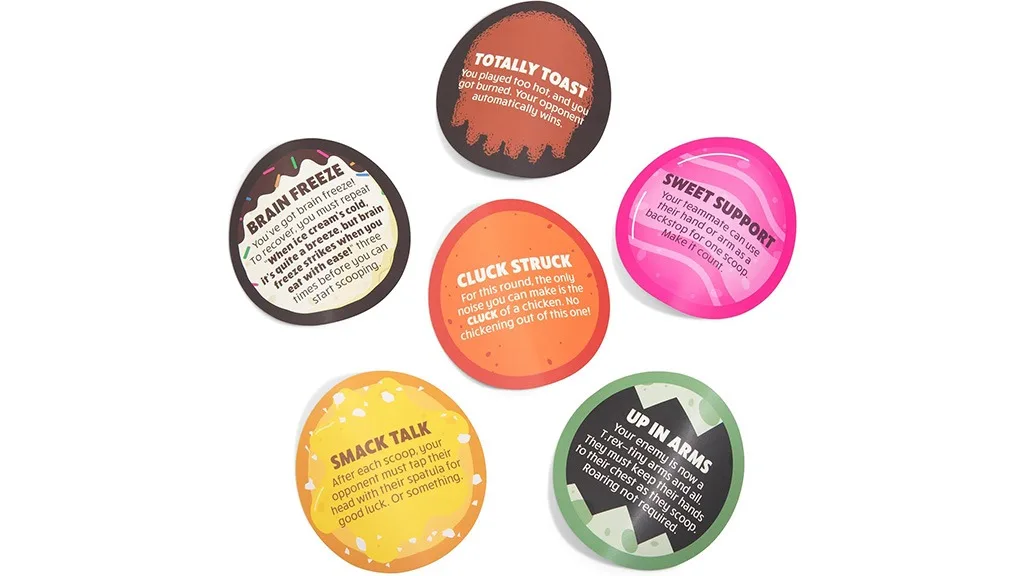 A Food Fighter kártyák extra kihívásokat biztosítanak számodra vagy a másik csapat számára, fokozva ezzel a játékélményt. Néhány kártya igazán édes lehet, míg mások ragadós helyzetbe hozhatnak. Például kaptam egy Cluck Stuck nevű kártyát, amely szerint az adott körben csak egy csirke kotkodácsolását utánozhattam. Másrészről a Totally Toast kártya növeli a tétet. Ha ez a kártya valaha is a tányérodra kerül, a kör automatikusan véget ér, és a másik csapat nyeri azt a kört.