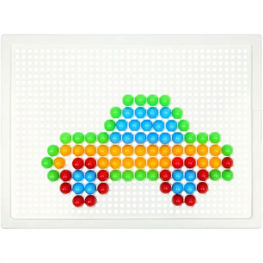 Egyre több készségfejlesztő, kreatív játékok születnek a kisgyermekek számára, ezek közé sorolhatjuk a Mosaik pötyis szettet is. A játék lényege abban áll, hogy a fehér alaplapon levő lyukakba kell illesztenünk a kicsi pötyiket és azokkal képeket alakítsunk ki. Négy színt tudunk megkülönböztetni a kis dugók között, ezek a kék, zöld, piros és sárga. A mozaikkép mindig jó kihívás a gyerekeknek és egyben a felnőtteknek is, akik új fogalmakra taníthatják a kicsiket játszás közben.