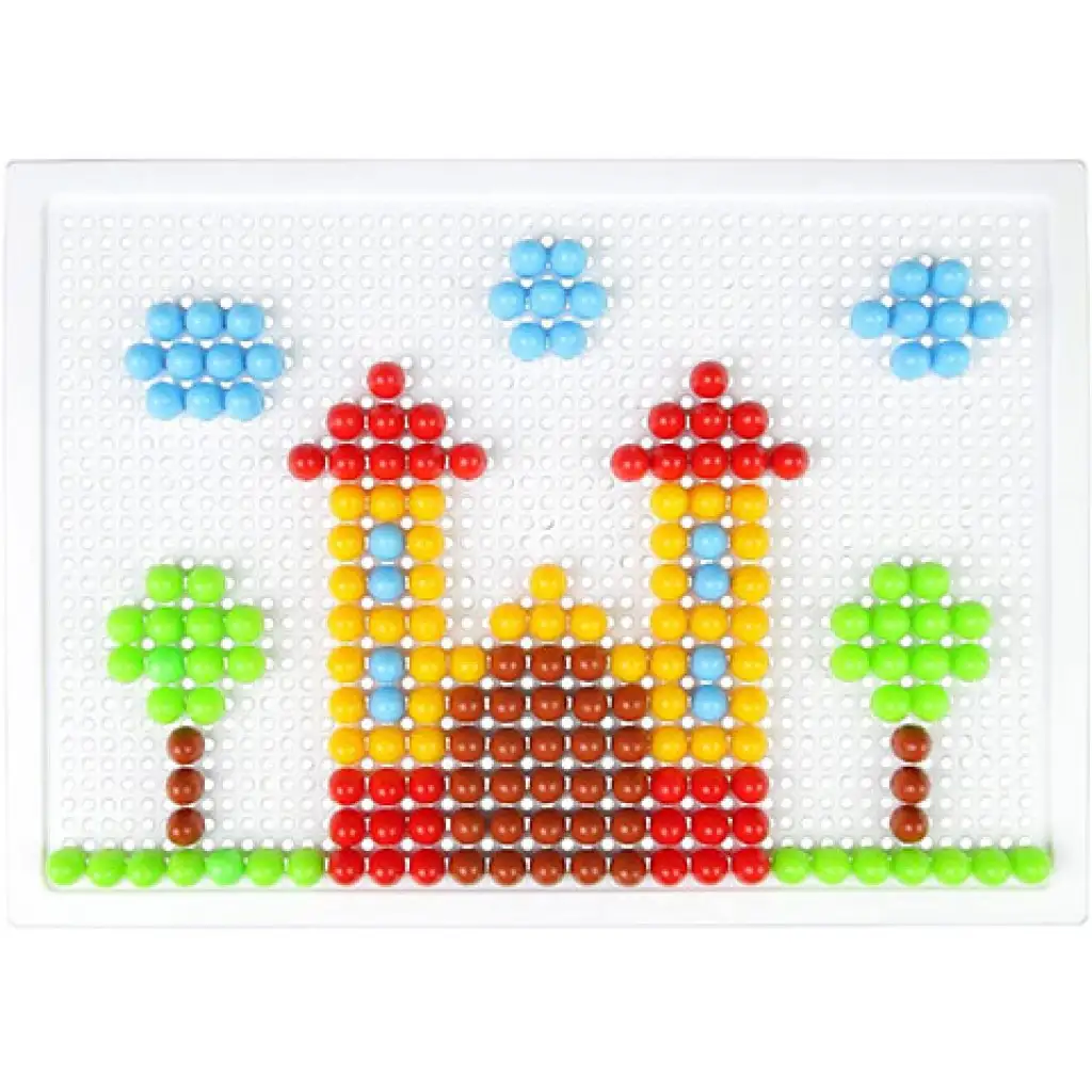 A 200 darabos pötyis Mosaik szettel csodálatos képeket alkothatnak a kisgyermekek. Az alaplapon több alakzat is elfér, így egy rajzból érdekes meséket lehet kitalálni. A játék lényege, hogy a több színű pötyiket a lyukacsos táblába kell szurkálni. Ezzel a feladattal a gyermekek a kézügyességüket fejlesztik, az egész tevékenység pedig a kreativitást serkenti. A 10 mm-es átmérőjű pötyik áttetszőek, ennek hatására élénkebb színben mutatkoznak.