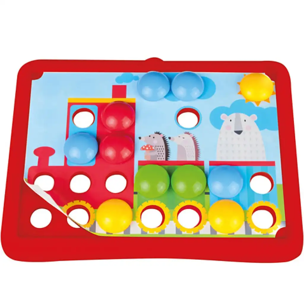 Ezzel a szuper pötyi játékkal nem csak jól szórakoznak majd a kicsik de fejlődhetnek is, hiszen összesen hét különböző sablont tartalmaz a szett melyeket a játéktáblára helyezve kiegészíthetnek pötyikkel! A járművek témakörét feldolgozó szett a kézügyességet és a logikát is fejleszti, mialatt szórakoztató kikapcsolódás is. A játékszett összesen 36db színes, nagy méretű pötyivel érkezik és 7db sablont is tartalmaz az alap mellett.