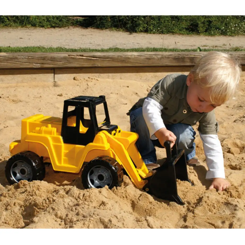 Egy homokos vízparton vagy a játszótér homokozójában neked lehet a legvagányabb munkagéped ennek a klasszikus sárga és fekete homlokrakodónak köszönhetően. Ez a remek földmunkagép kiválóan alkalmas arra, hogy felpattanj a vezetőfülke mögötti részre, hiszen az erős acéltengelyek könnyedén elbírnak, és onnan kényelmesen tudod kezelni a homlokrakodó kanalat egy masszív fogantyú segítségével. A LENA Spiel Gut tanúsítványa biztosíték ként szolgál a kiváló minőségű alapanyagok és a strapabíró kialakítás terén épp úgy, mint ahogy a gyerekek szempontjából legfontosabban számító játékélmény szempontjából.