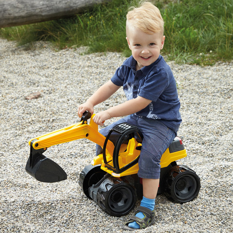 4 éves kisfiam kapta ajándékba. Megfelelően nagy, strapabíró, egyszerűen mozgatható markoló. A 2 éves kislányunk is használja már.