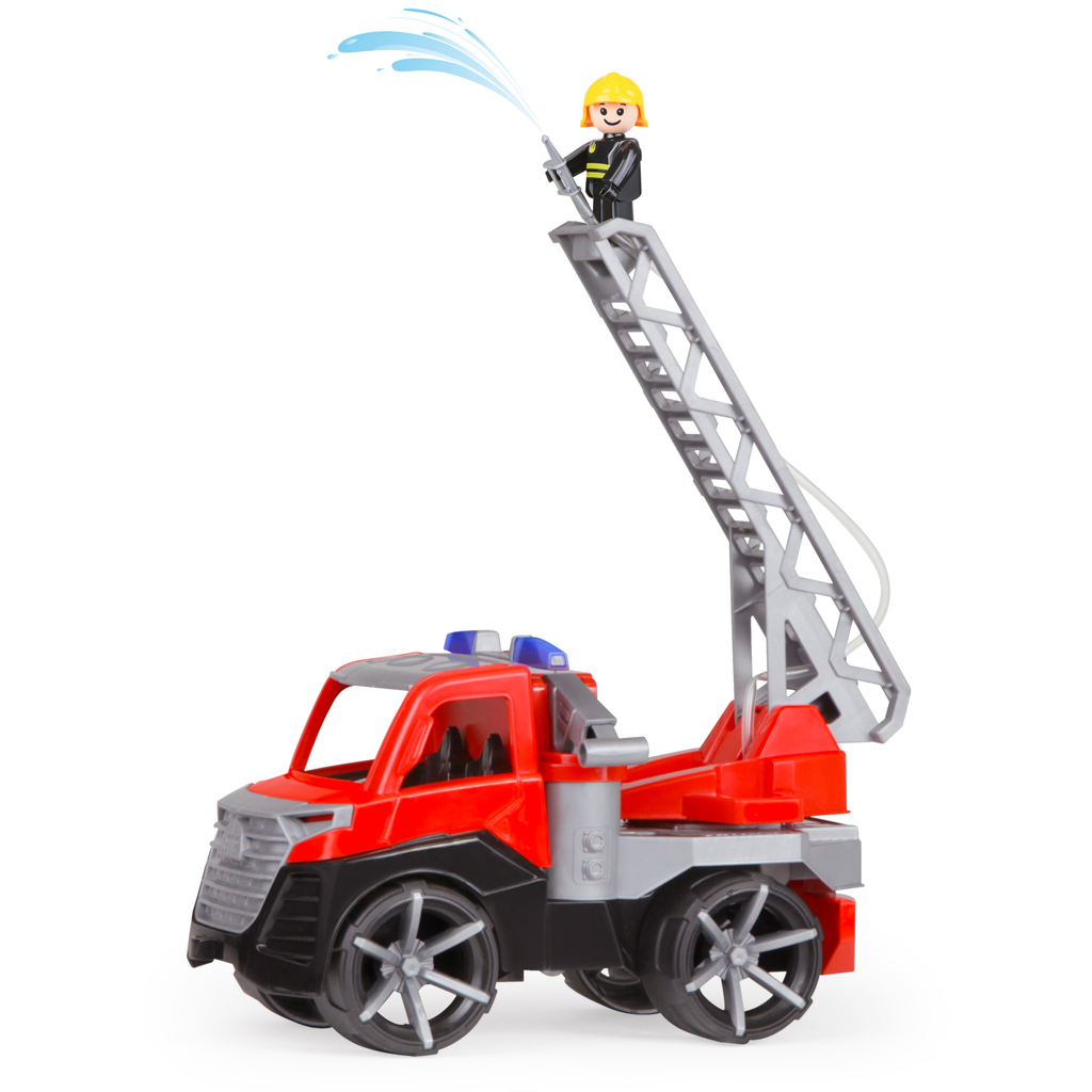 A tűzoltóautóhoz tartozik egy vidám, mosolygós tűzoltó figura, aki irányítja az eseményeket a vezetőfülkéből vagy a létráról. A hosszú, kihajtható és forgatható tűzoltólétra végén egy vízpermetező funkcióval ellátott cső található, amely valóban képes vizet spriccelni – csak töltsd fel vízzel, és indulhat az igazi tűzoltás! A mozgatható alkatrészek ösztönzik a szerepjátékot, segítenek a finommotorikus képességek fejlesztésében, miközben rengeteg örömteli percet biztosítanak.