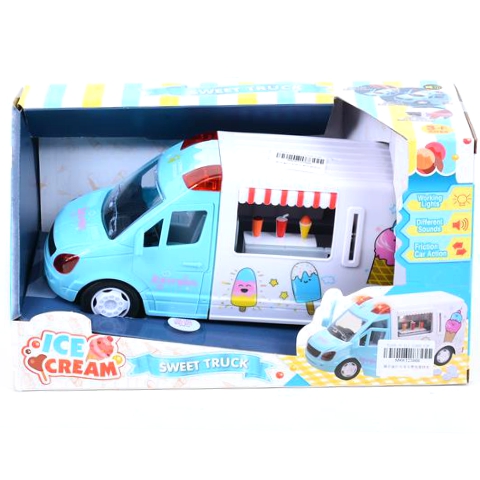 A gyerekek tetszését biztosan elnyeri majd ez a fantasztikus fagyis-furgon, mely izgalmas meglepetéseket tartogat a kicsik számára, melyek még élvezetesebbé teszik majd a játékot. Ez a részletgazdagon kidolgozott teherautó lendkerekes kialakítással rendelkezik, így amint a gyerekek elgurítják, sokáig fog majd gördülni. Gombnyomásra a kocsi különleges fény- és hangeffektekkel szórakoztatja a majd a kicsiket, így még élvezetesebbé téve a játékot. Az autó strapabíró műanyagból készült, mérete megközelítőleg 26cm-es.