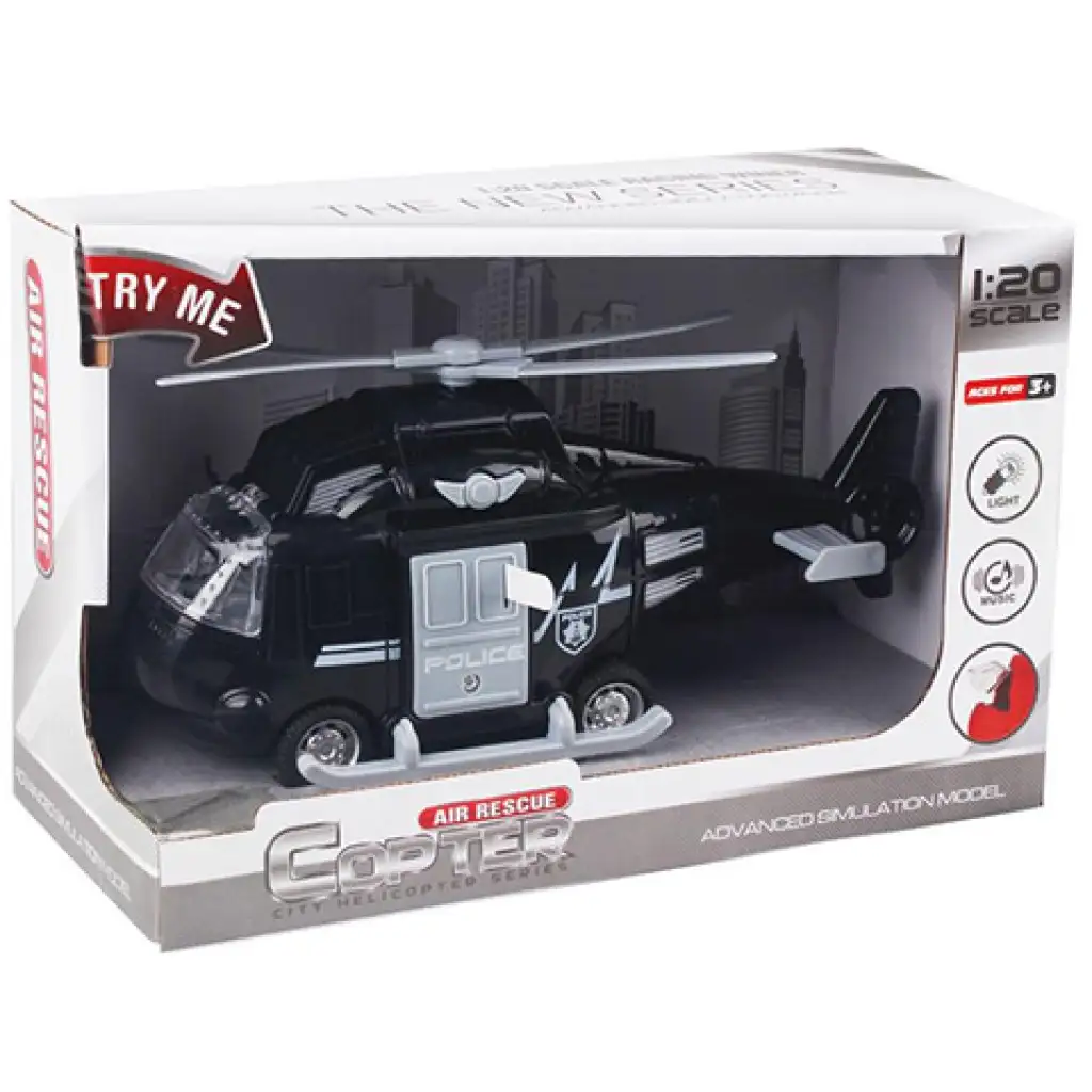 Lendkerekes rendőrségi helikopter fénnyel és hanggal 1/20Lendkerekes rendőrségi helikopter fénnyel és hanggal 1/20