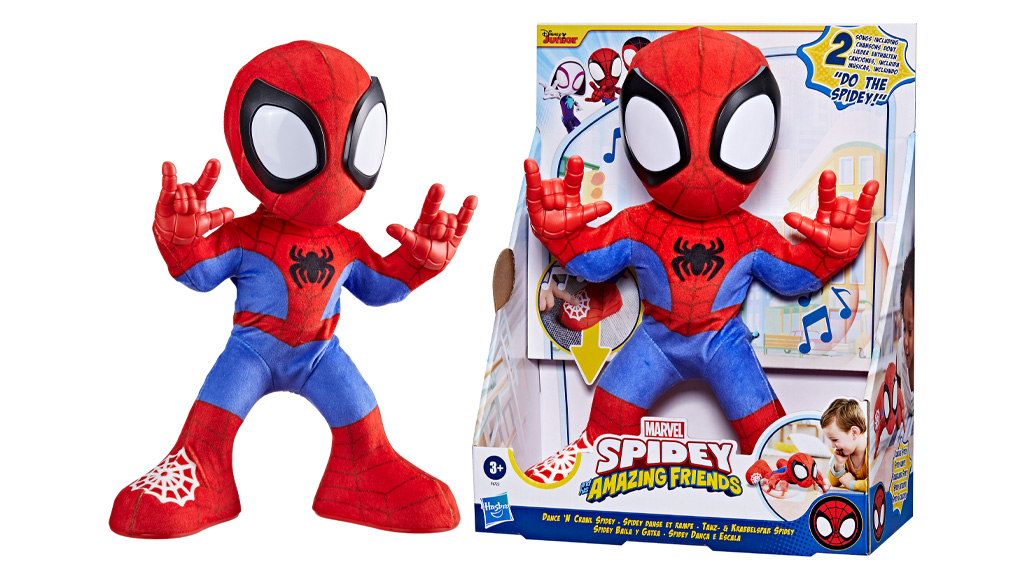 Idén nyáron a szülők hozzáadhatják a Táncoló és mászó Spidey-t a játékgyűjteményhez. A gyerekek táncolhatnak a 25 cm-es interaktív plüssel, és hallhatnak mókás kifejezéseket, mint például „Csináljuk a Spidey táncot!” és „Menj, hálók, menj!”, valamint szuper dalokat. Összesen 20 kifejezés és hang található benne, plusz két dal, amelyeket a gyerekek felismernek a műsorból! Ha a gyerekeknek egy kis bátorításra van szükségük, táncolhatnak a „Csináljuk a Spidey-t!” zenei videóval, amely idén nyáron debütál.