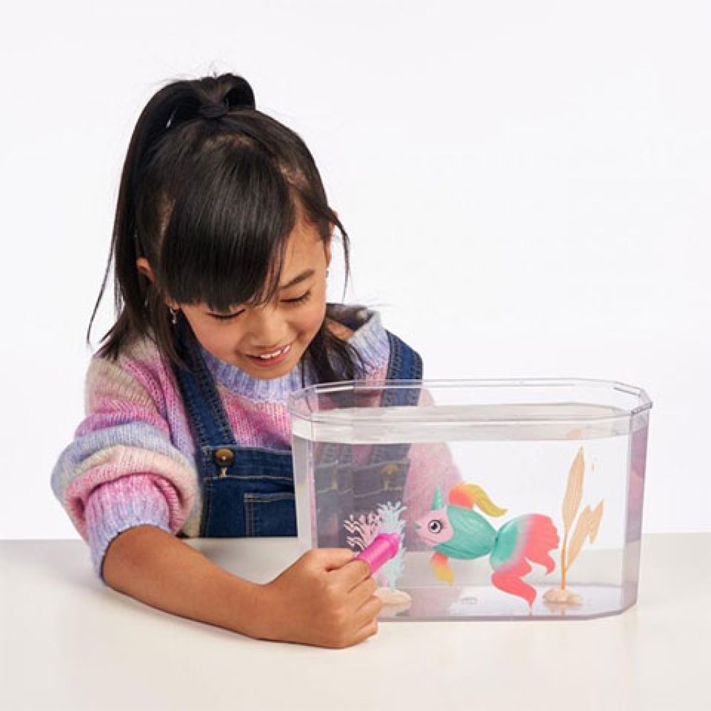 Lepd meg a kislányodat egy olyan különleges ajándékkal, mint ez az akvárium, amiben a legszebb halacsák kerülhetnek anélkül, hogy fogságba kéne tartani egy valódi állatot. A Little Live Pets interaktív halacskát vízbe kell helyezni és máris lubickolni kezd, akár egy igazi díszhal az akváriumban ami szintén a csomagolás része, csak éppen fel kell tölteni egyszerű csapvízzel. A különleges etetővel a gyerekek magukhoz csalhatják az úszkáló halacskát. A halak további változataiért nézzen szét áruházunk kínálatában, hiszem három különféle változatban érhetőek el.