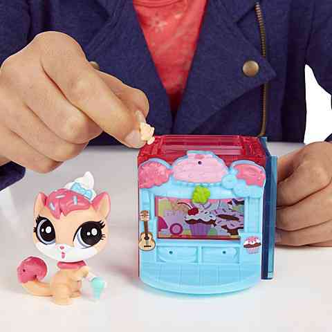 Kapcsold össze a Mini játékelemeket és hozd létre a saját kis Littlest Pet Shop birodalmadat! A játékszett tartalmazza Sugar Sprinkles cica figurát is, akinek egyik kedvenc édessége a fagylalt, épp ezért megnyitotta saját fagylaltozóját is. Játssz el mesebeli jeleneteket a kis cica figurával és elevenítsd fel a mese történéseit is.