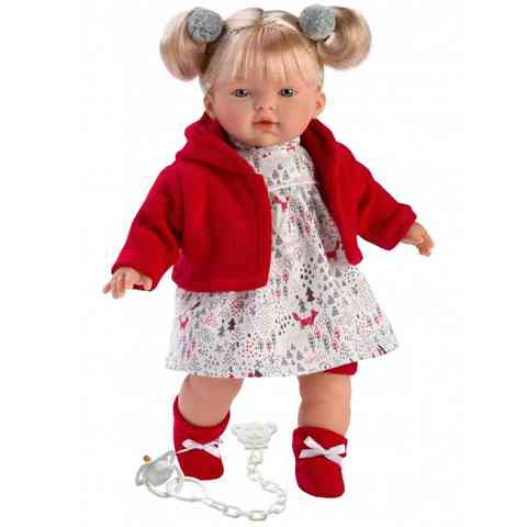 Llorens: Aitana 33cm-es síró baba vörös kabátbanLlorens: Aitana 33cm-es síró baba vörös kabátban