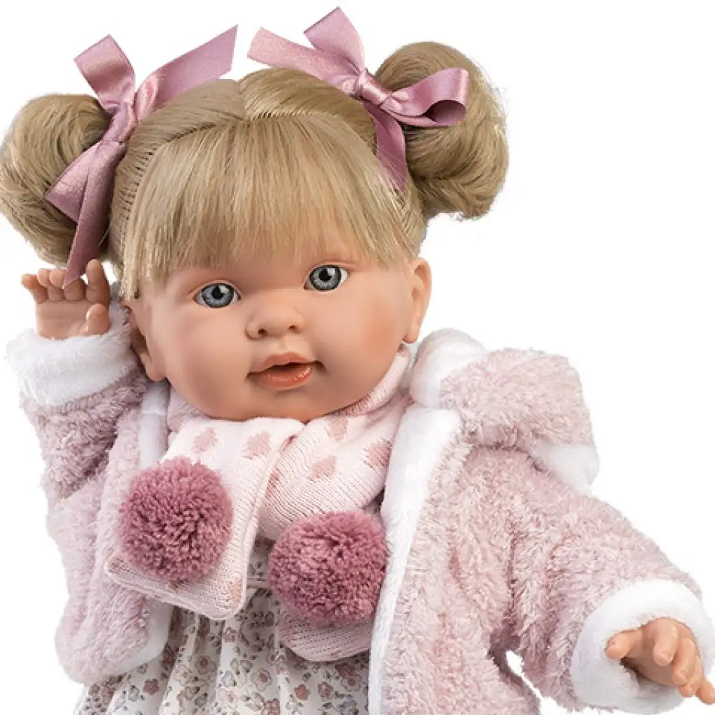 Llorens: Alexandra síró baba cumival, rózsaszín kardigánban, virágos ruhában 42cmLlorens: Alexandra síró baba cumival, rózsaszín kardigánban, virágos ruhában 42cm