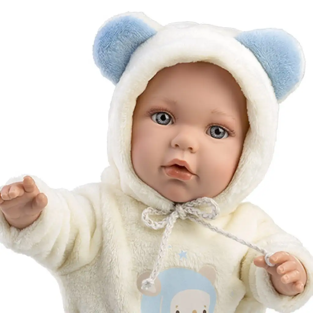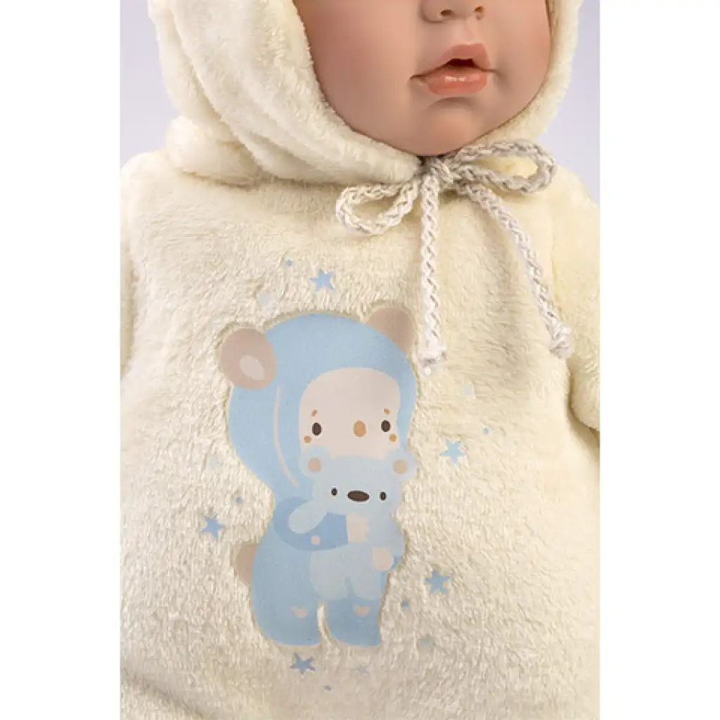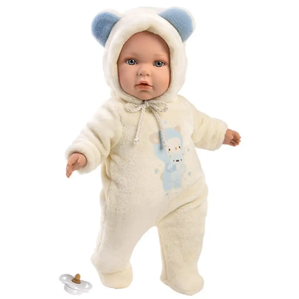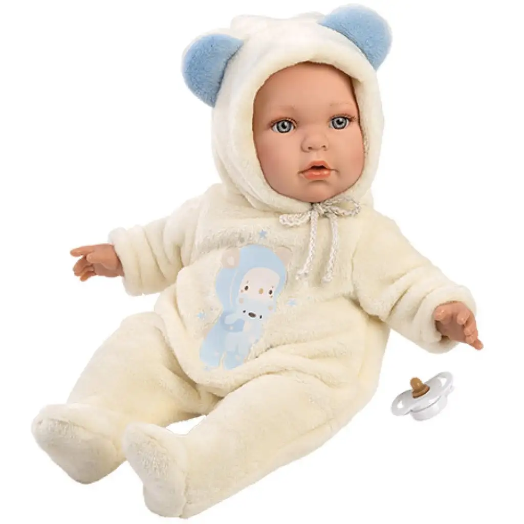 Llorens: Enzo baba macifüles rugdalózóban cumival 42cmLlorens: Enzo baba macifüles rugdalózóban cumival 42cm