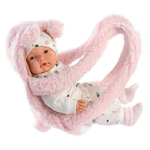 Llorens: Joelle 38cm-es síró baba rózsaszín babahordozóval