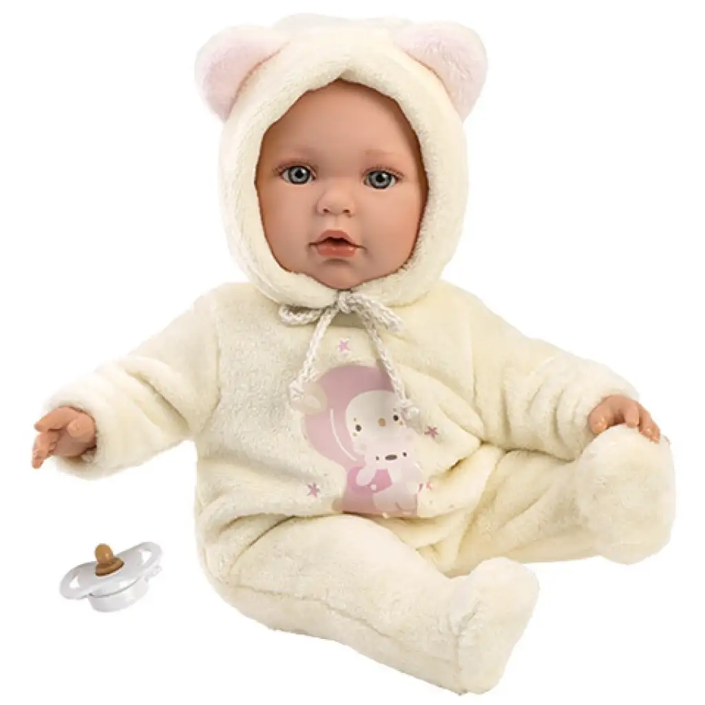 Llorens: Julia baba macifüles rugdalózóban cumival 42cmLlorens: Julia baba macifüles rugdalózóban cumival 42cm