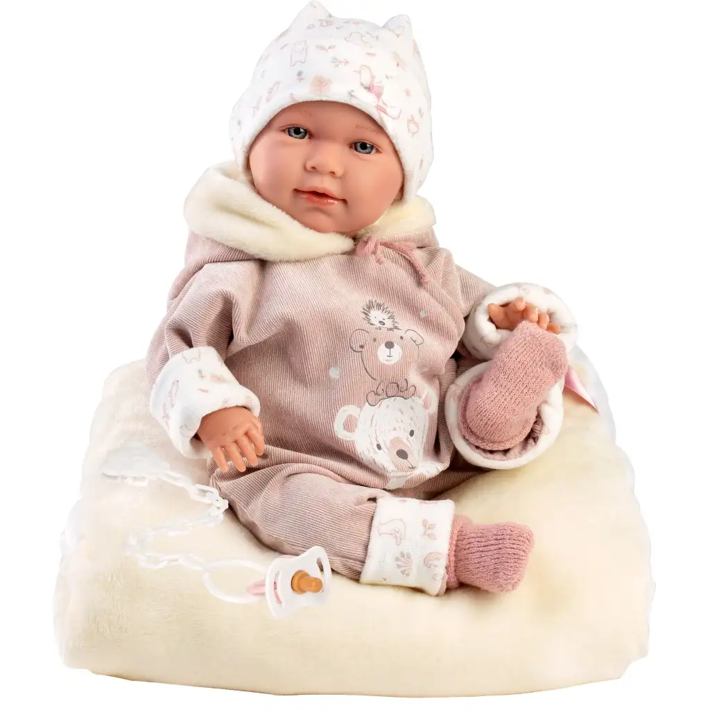 Llorens: Lala 42cm-es baba hanggal macis ruhában, ágyikóval