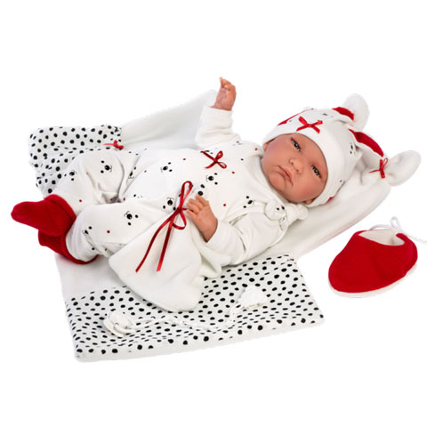 A kisbabák nagyon aranyosak tudnak lenni, és ha gyermeked is oda van értük és szeret babázni, tökéletes választás lehet számára ez a fiú baba. Lalo egy nagyon aranyos kutyusos szettben érkezik majd, dalmata pöttyös takaróval, puha kutyafüles sapkában és kutyusos rugdalózóban. Kialakítása rendkívül élethű, ami a könnyen megformálható, lágy, gyermekbarát műanyagnak köszönhető. Törzse puha textil anyagból készült, melyet megnyomva a baba síró hangot hallat, mely arra ösztönzi gyermekedet, hogy vegye kézbe és gondoskodjon Lalo-ról.