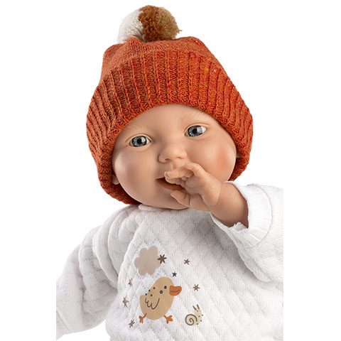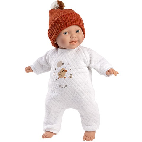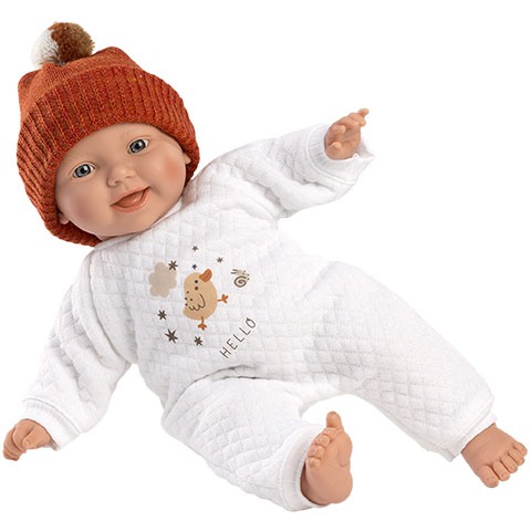 Llorens: Lány csecsemő 31cm-es baba madárkás ruhában és sapkábanLlorens: Lány csecsemő 31cm-es baba madárkás ruhában és sapkában