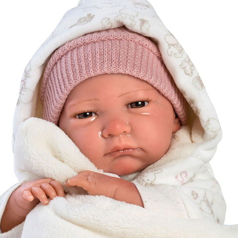 A Llorens babái mind kiváló minőségűek és részletes kialakítást kapnak, ám most egy olyan babát szerezhetsz be, mely kifejezetten élethű megjelenést kapott, rengeteg apró részlettel. A baba teste puha textilből készült, mely nehezített, így a baba súlya olyan, mint egy igazi babáé. Végtagjai gyermekebarát, kiváló minőségű lágy műanyagból készültek, melyeknek még a tapintása is olyan, mint az igazi bőré. Részletes kialakítást kaptak, kezdve a körmöktől a talp és kéz lenyomatokig, de még az ereik is láthatóak, valamint a bőrük tónusa és apró részletei is megfestésre kerültek. A baba ruhái szintén kiváló minőségűek, melyek között minden alap darab és még egy babazsák is található, amik sokáig lehetnek használatban. Fejecskéje ugyancsak részletes megjelenítést kapott, a feje búbjától a nyakáig. Haja megfestett, ám nagyon élethű, ráadásul a baba szeme, orra és szája is nedves, sírós hatást kapott, így téve még élethűbbé azt.