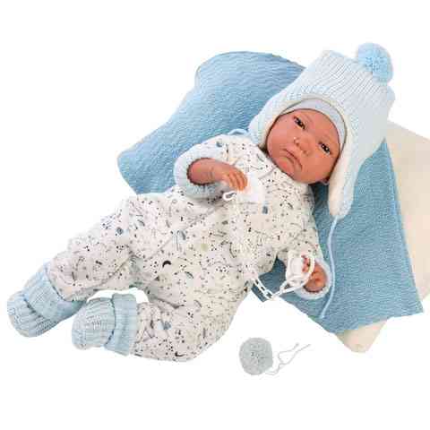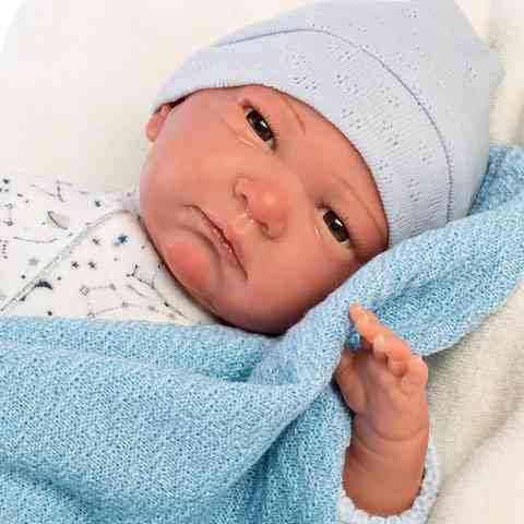 Llorens: Limitált szériás élethű fiú csecsemő baba csillagos ruhában 42cm