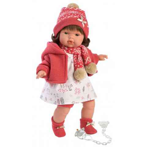 Ez a gyönyörű 38cm-es baba a megszólalásig hasonlít egy igazi kisgyerekre. Lola a népszerű spanyol babagyár, a Llorens legújabb kollekciójának tagja. A baba textil testtel és mozgatható végtagokkal készül és egy hangmodult is kapott, hogy még élethűbb legyen a játék a gyerekek számára. A gyönyörű, részletgazdagon kidolgozott babán a ruhácskán kívül egy sál, kabát és sapka is van, valamint egy cumit is tartalmaz a szett.