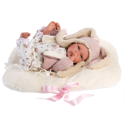 Llorens: Mimi 42cm-es baba nyuszifüles kötött sapkában funkcióvalLlorens: Mimi 42cm-es baba nyuszifüles kötött sapkában funkcióval