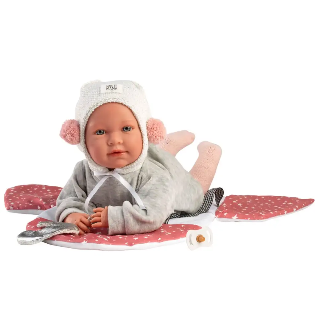 Mint minden Llorens baba, Mimi is Spanyolországban készül, kiváló minőségű alapanyagokból, kézzel, szeretettel. Ideális választás 3 éves kortól, ha olyan babát keresel, aki sír, megnyugtatható, és ráadásul egy különleges hordozóval együtt érkezik.